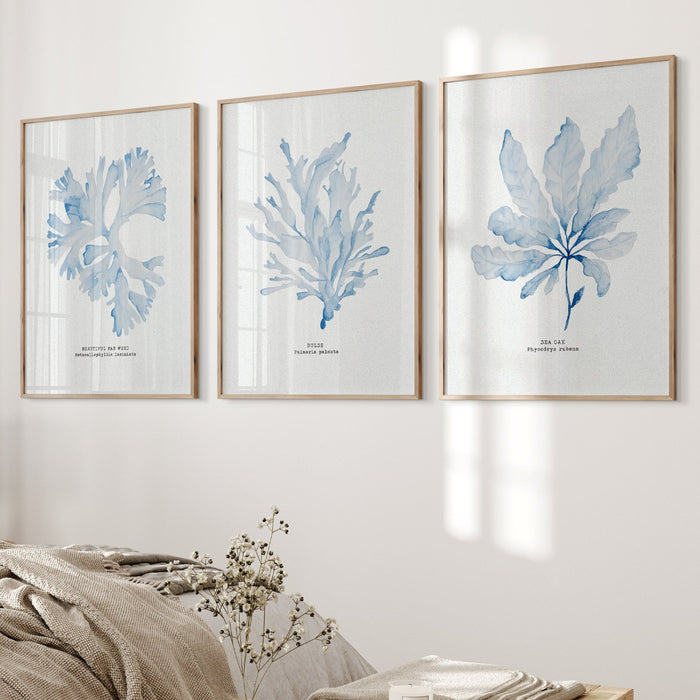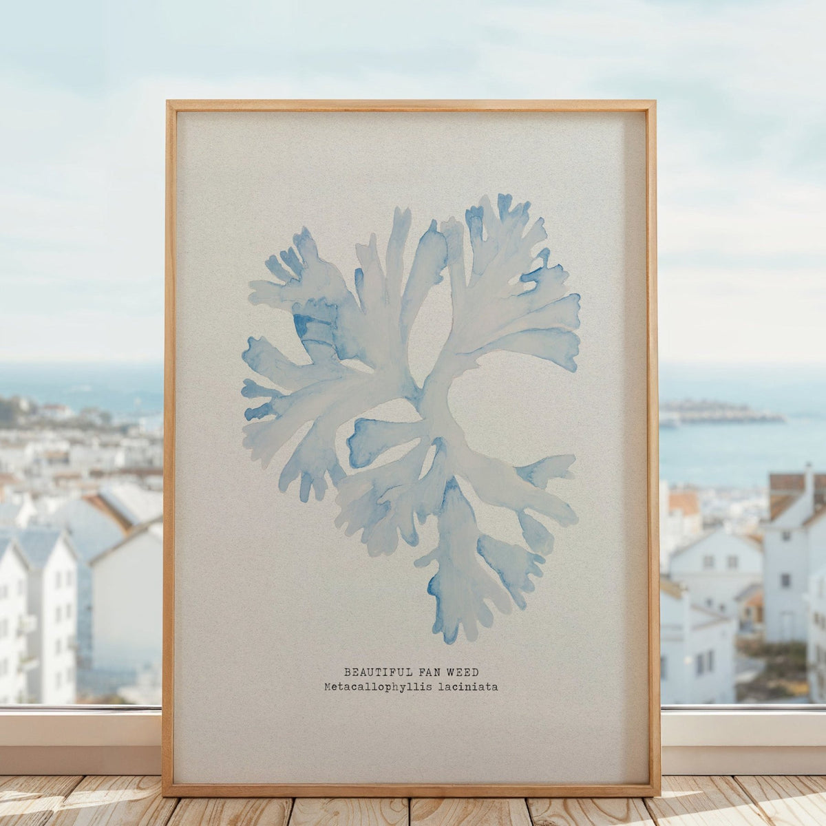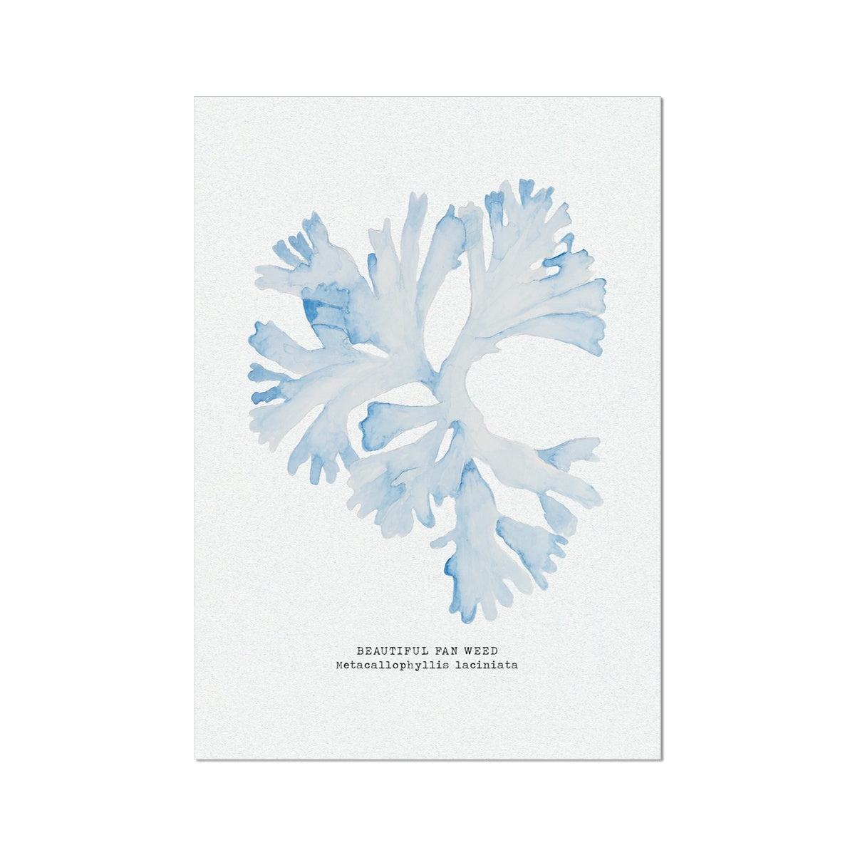 Blue Watercolour Seaweed Art Print | Beautiful Fan Weed Seaweed Painting - Unframed