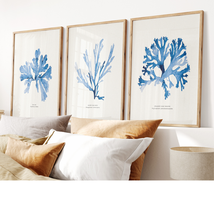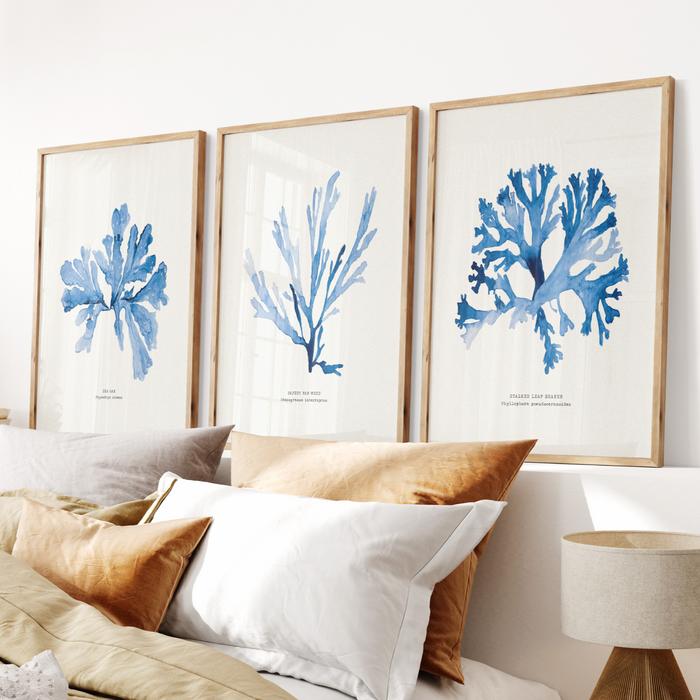 Blue Watercolour Seaweed Art Print | Sea Oak Seaweed Painting - Framed