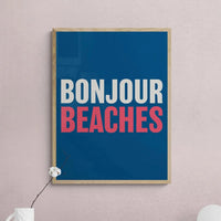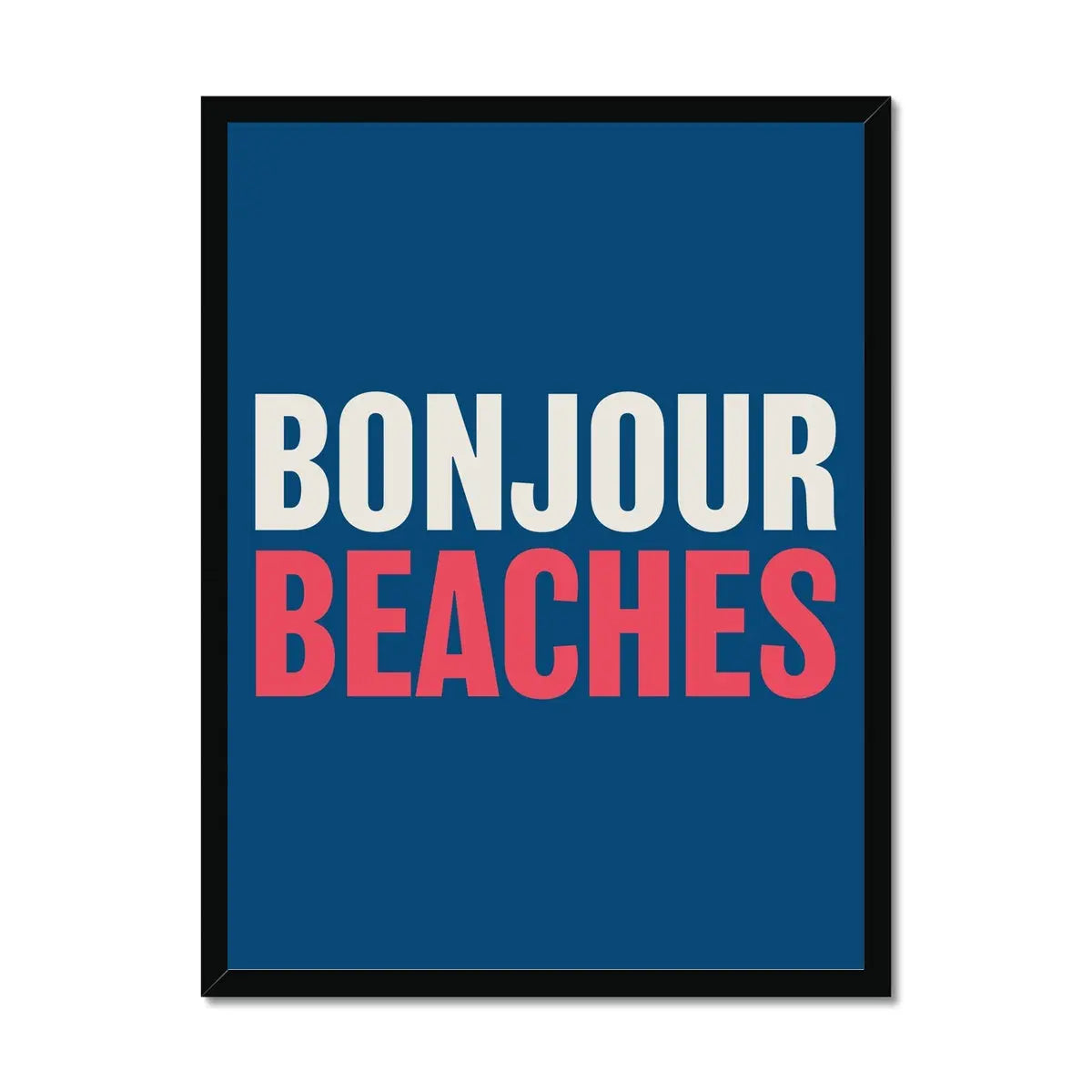 Bonjour Beaches (Tricolour) Word Art Print - Framed