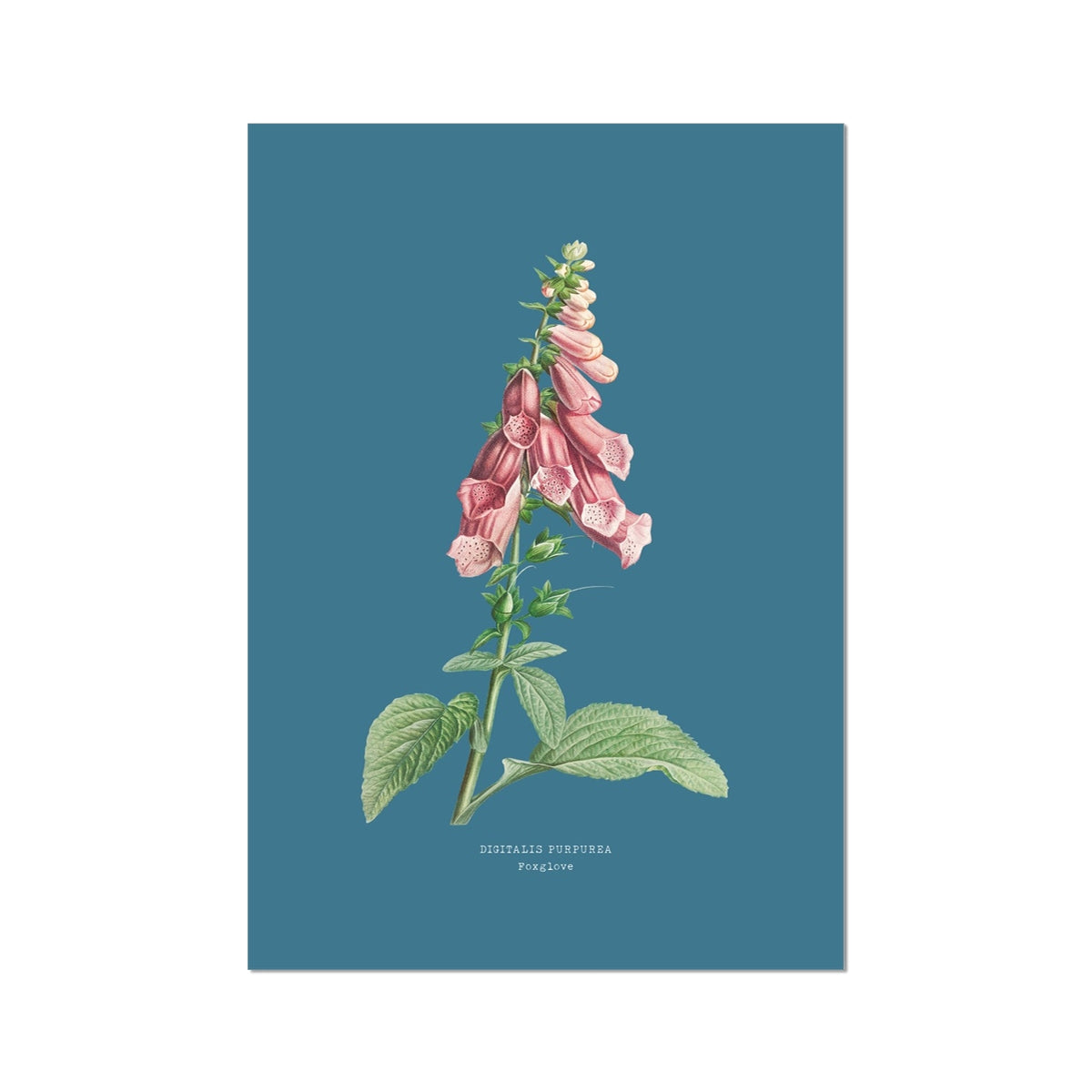 Foxglove | Botanical Art Vintage Flower Print | Marine Blue - Unframed