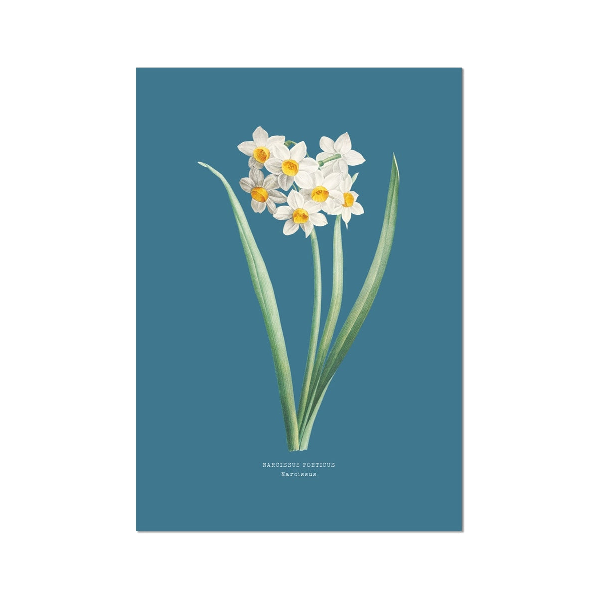 Narcissus | Botanical Art Vintage Flower Print | Marine Blue - Unframed