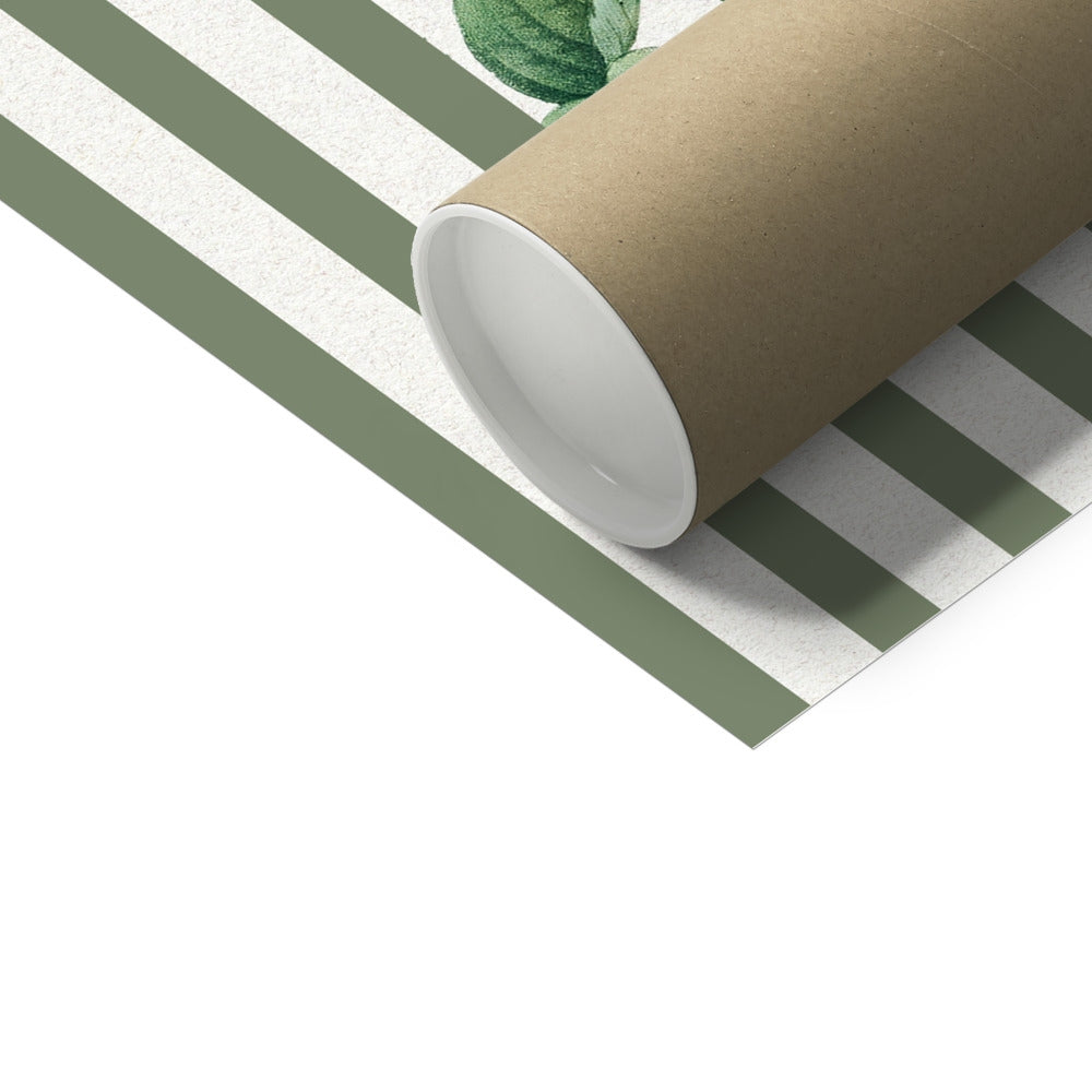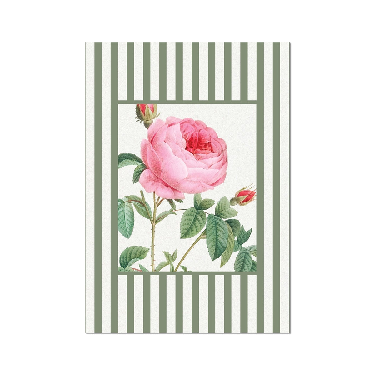 Vintage Rose 2 | Vintage Flower Art Print | Olive Green Stripe - Unframed