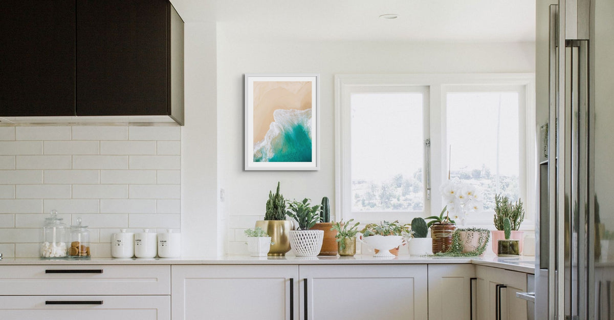 We have an array of whimsical quote prints and inspirational sayings, to abstract coastal art and beachy prints that can help you create a unique and personalised feel in your kitchen.