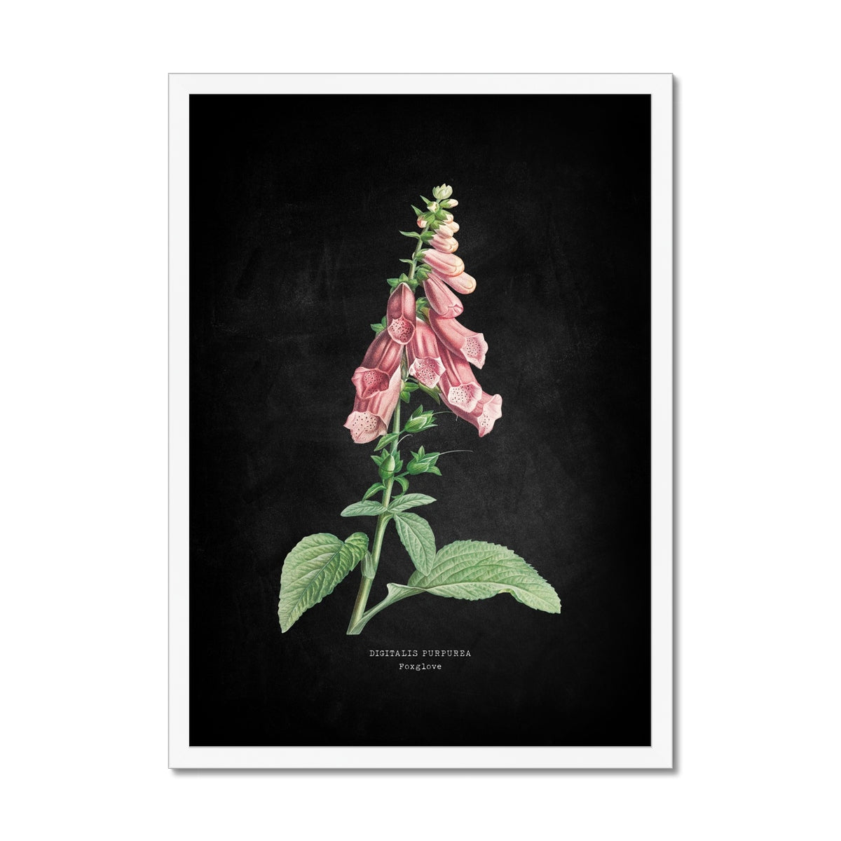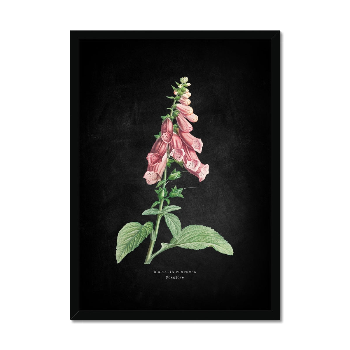 Foxglove | Botanical Art Vintage Flower Print | Black - Framed
