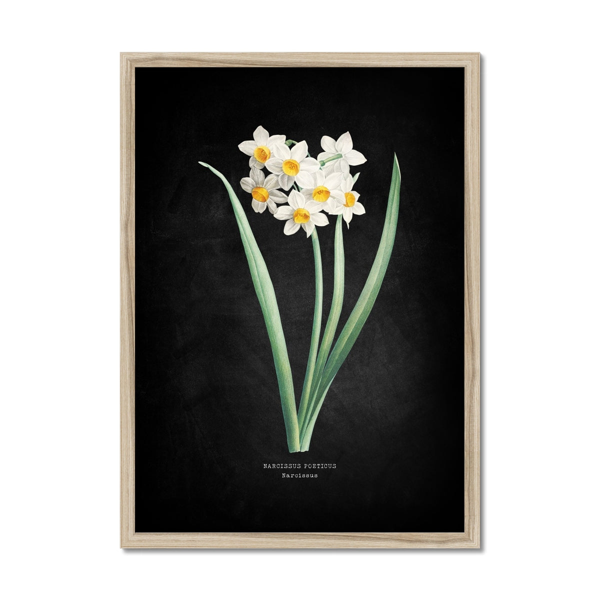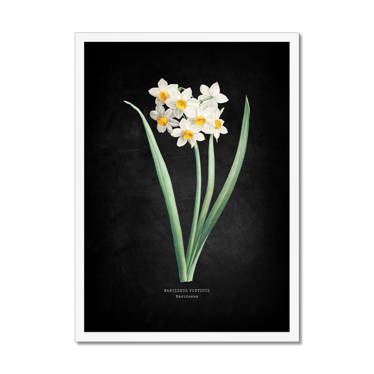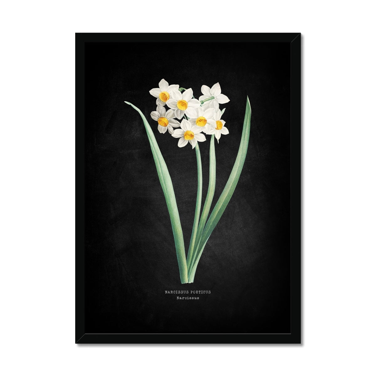 Narcissus | Botanical Art Vintage Flower Print | Black - Framed