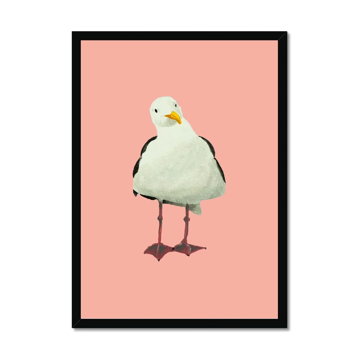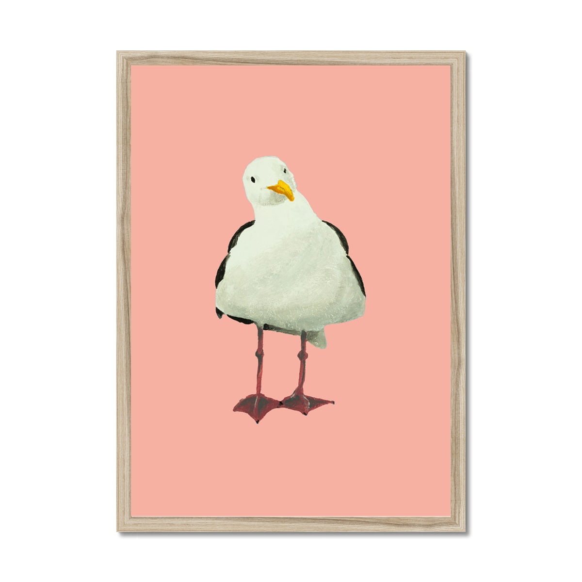 Seagull Painting | Bird Art Print | Coral Pink - Framed