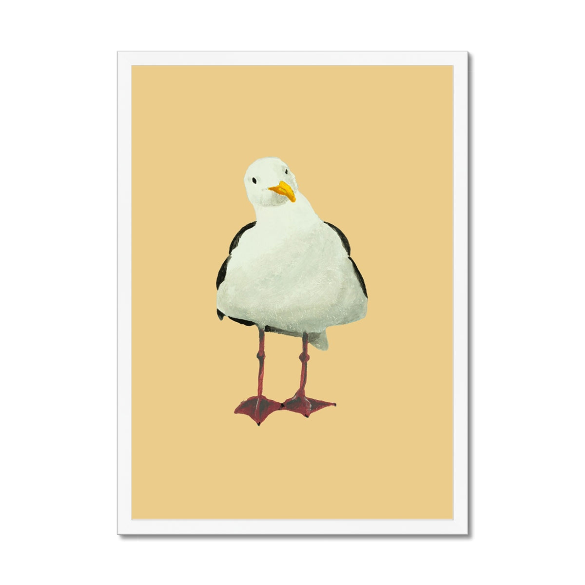 Seagull Painting | Bird Art Print | Yellow Sand - Framed