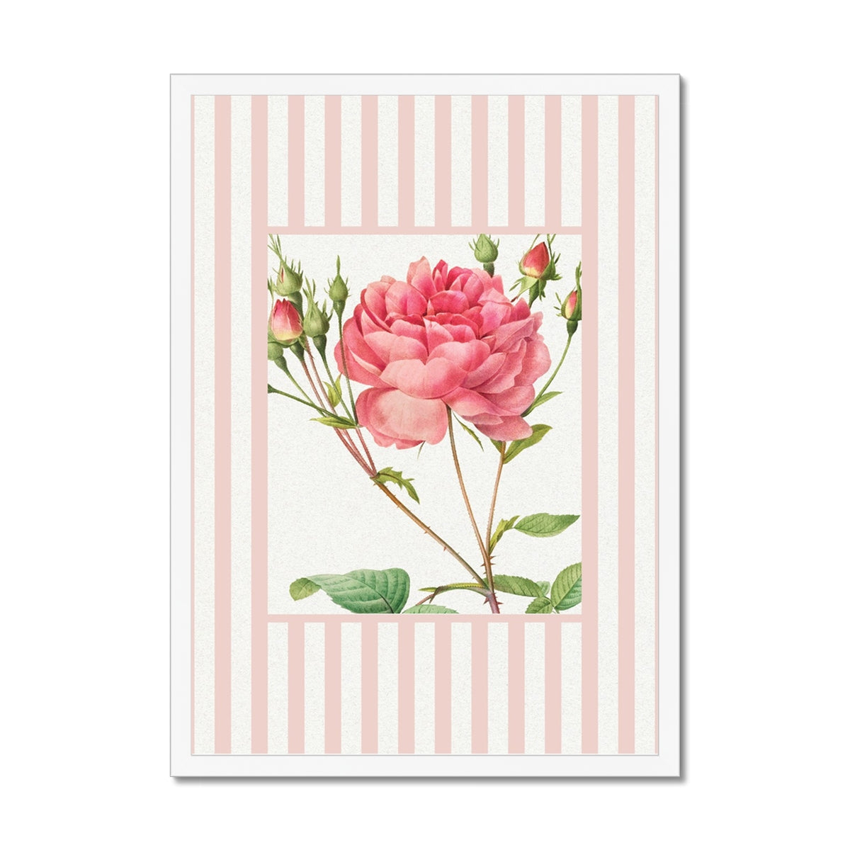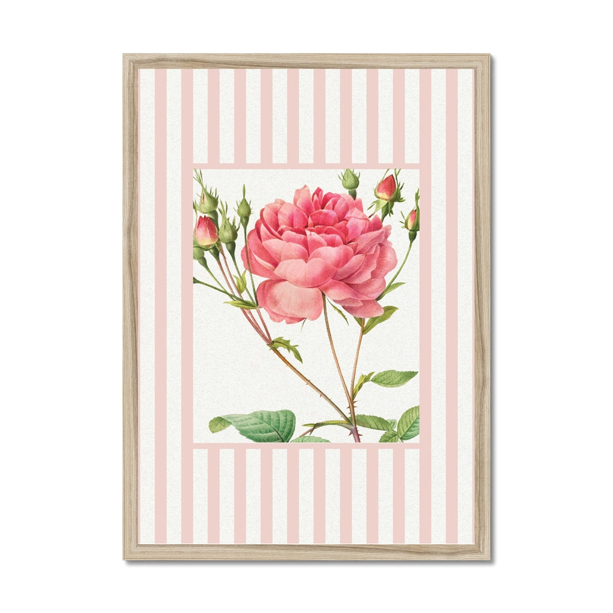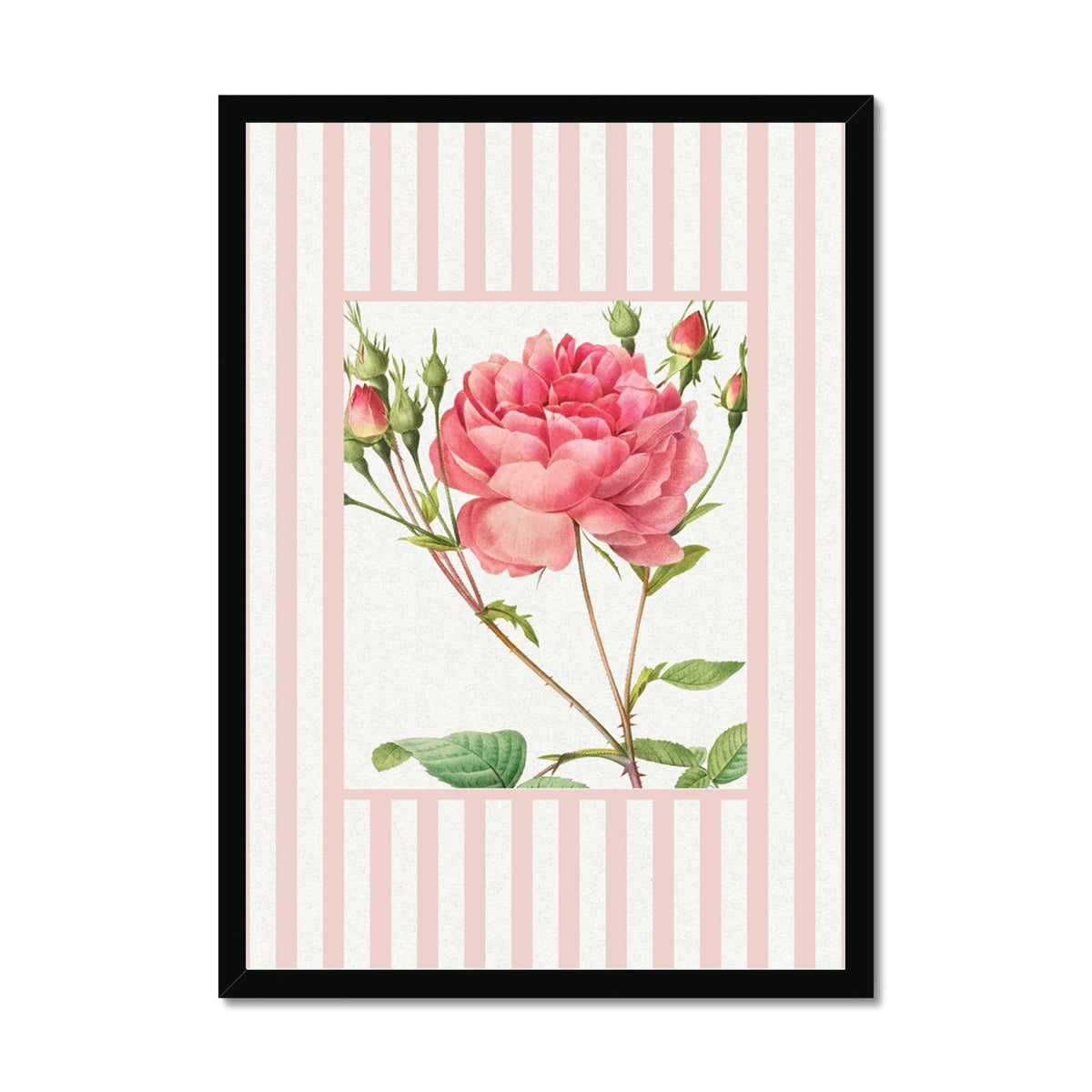 Vintage Rose 1 | Vintage Flower Art Print | Pink Stripe - Framed