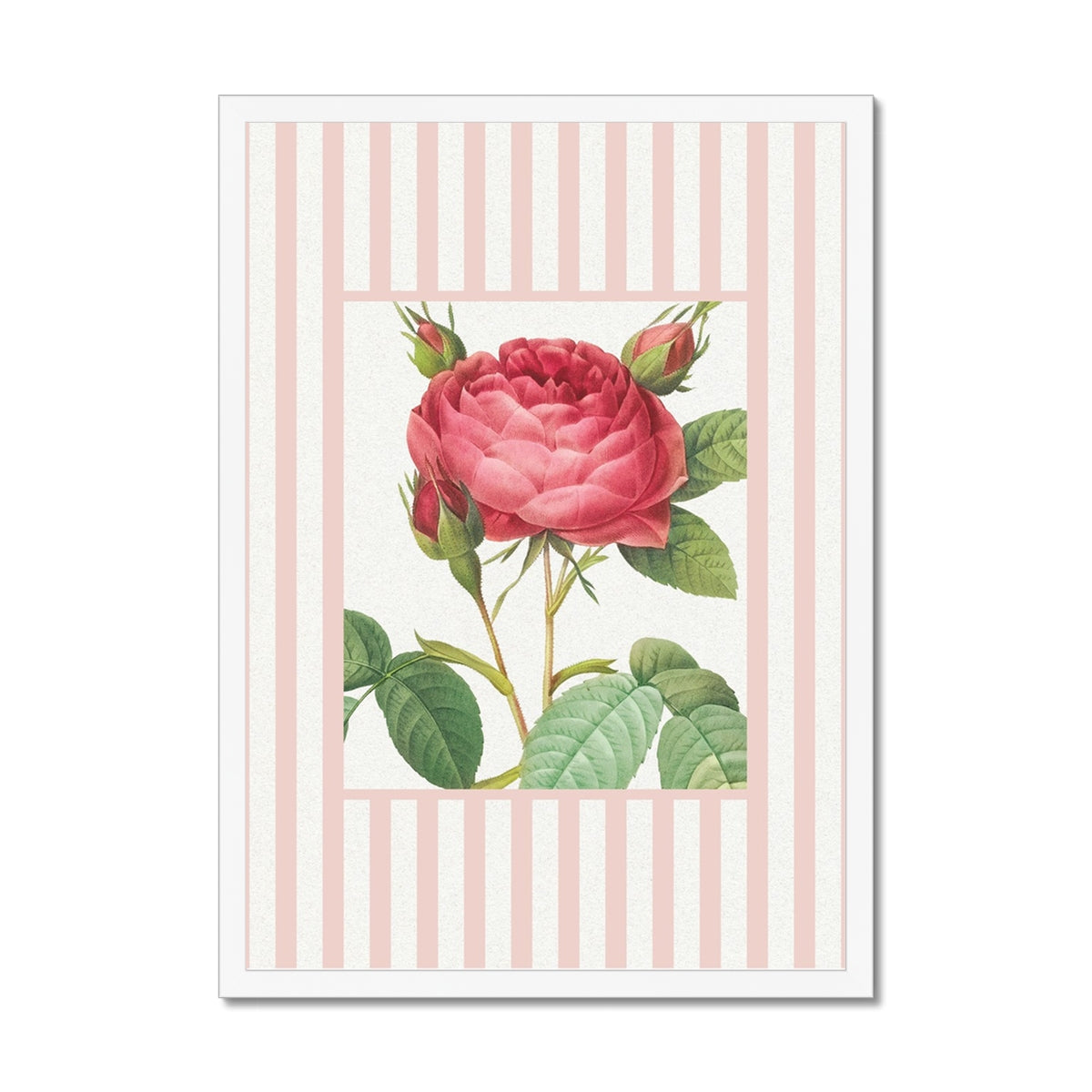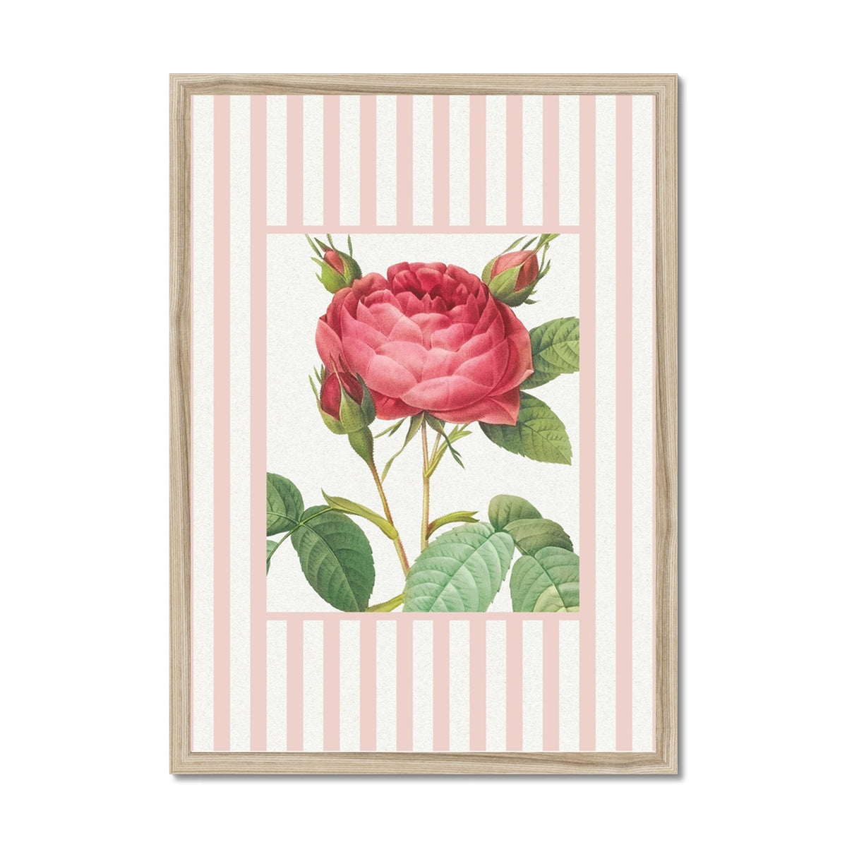 Vintage Rose 3 | Vintage Flower Art Print | Pink Stripe - Framed