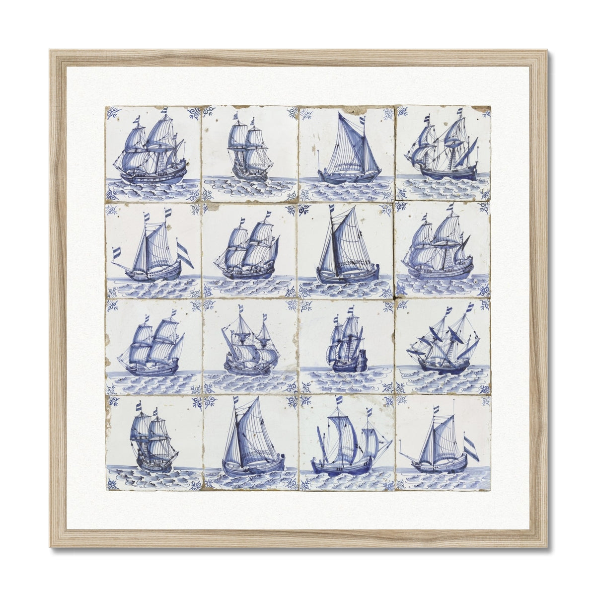 Vintage Ship Art | Vintage Delft-style Ship Tile Print - Framed