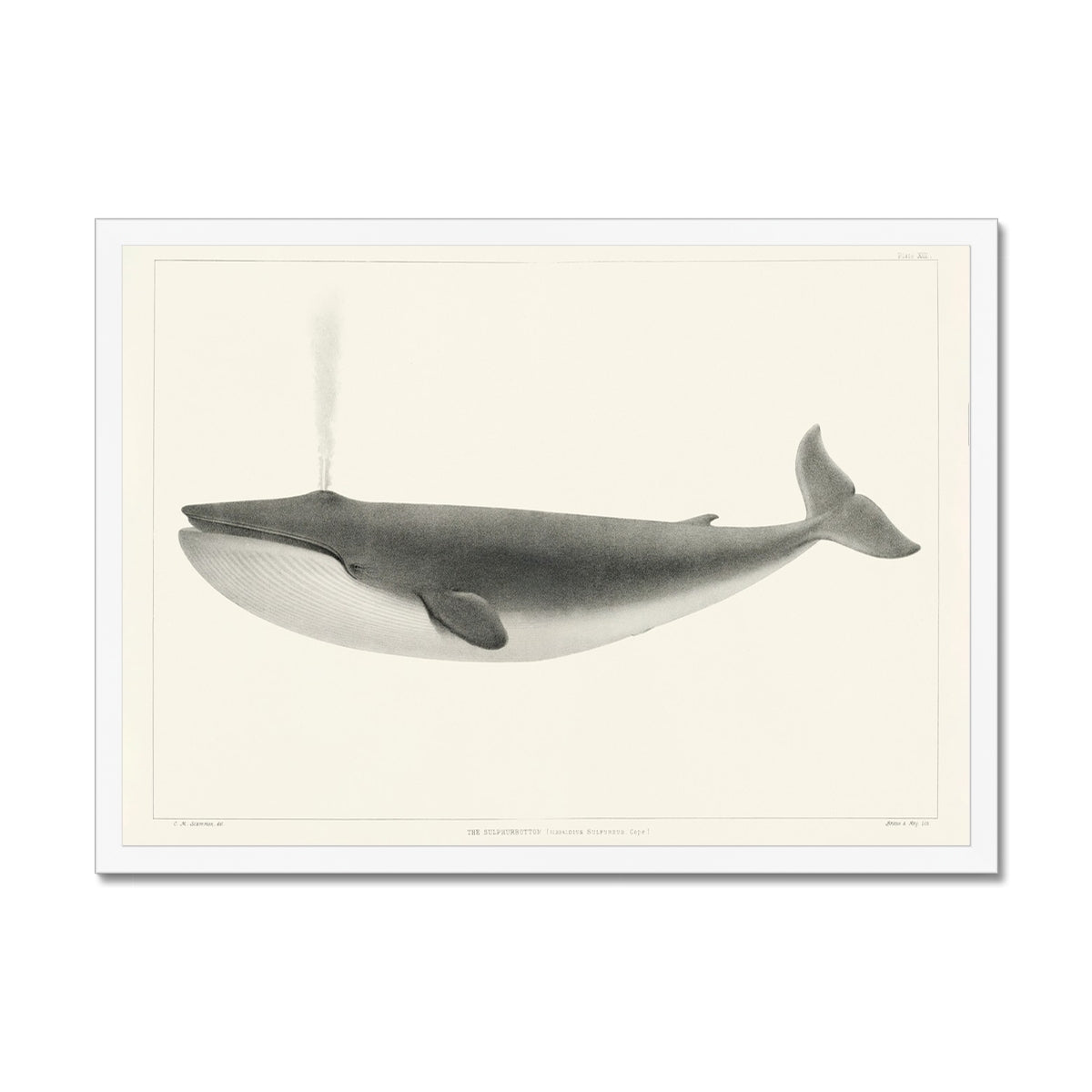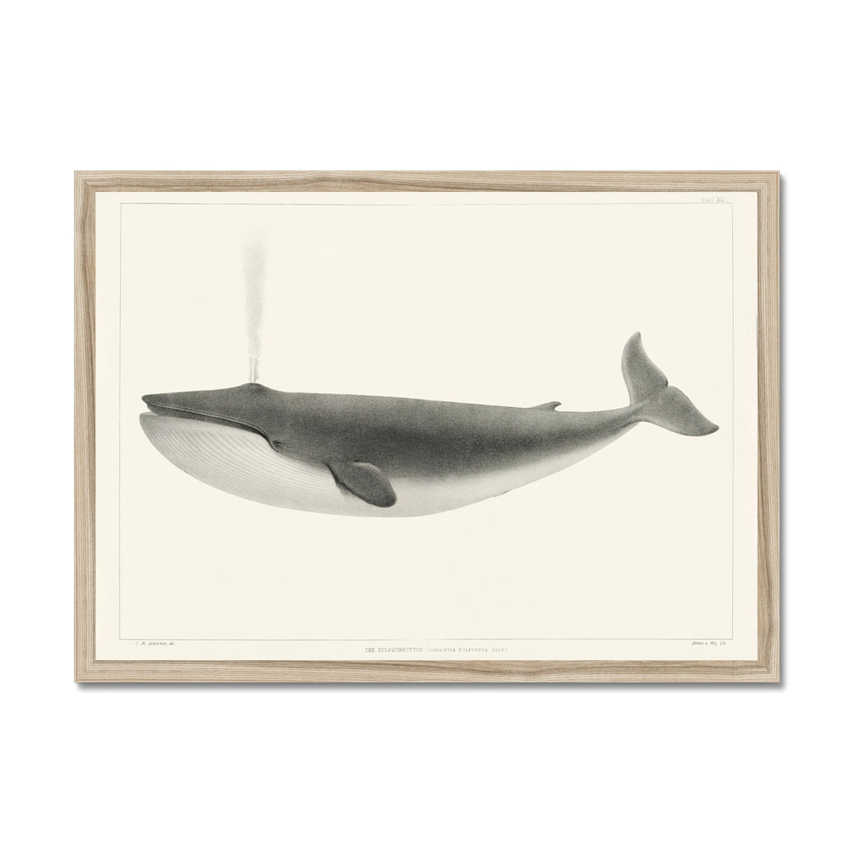 Vintage Whale Print | Blue Whale Art - Framed